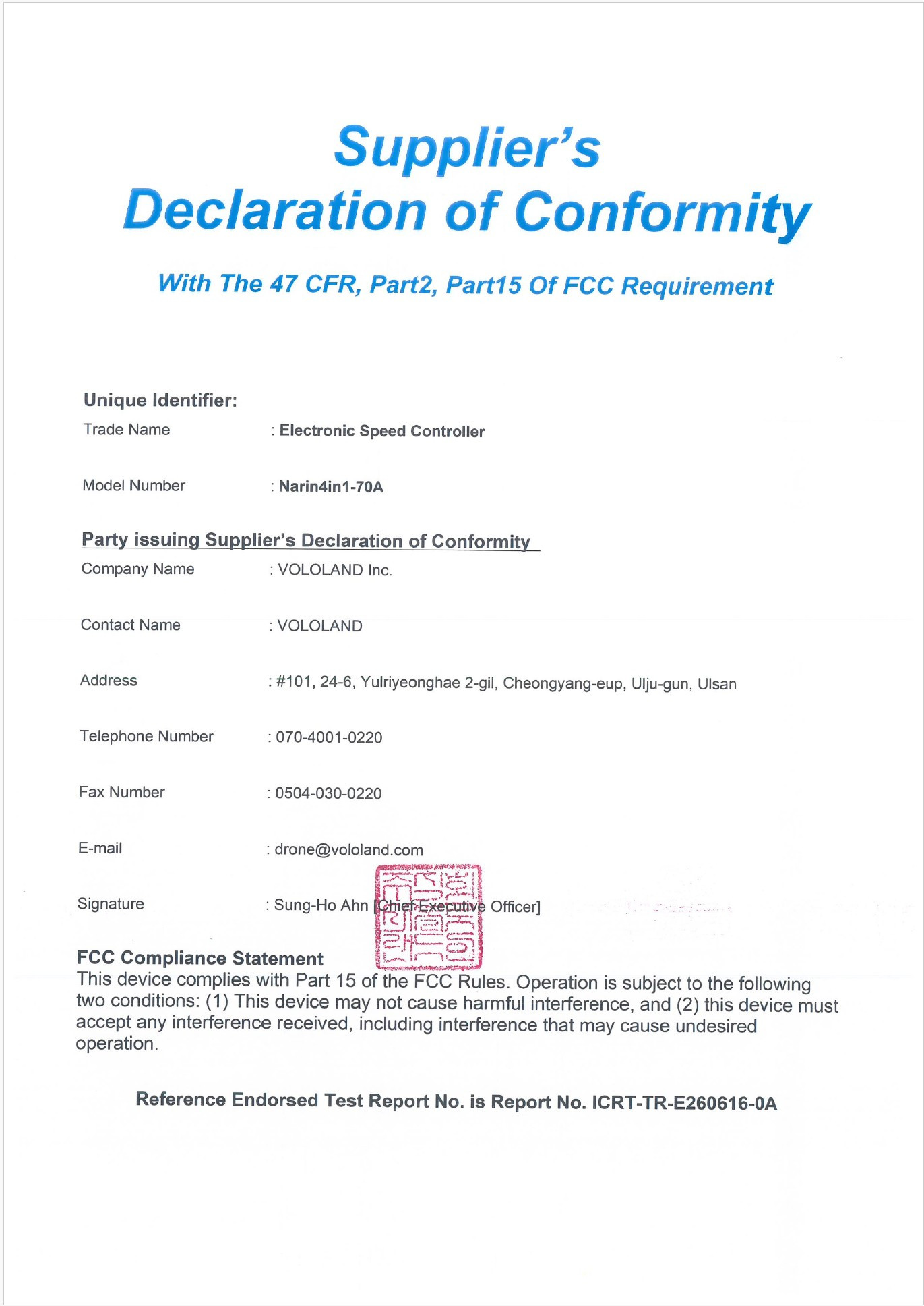 FCC 인증서 (Narin4in1-70A)